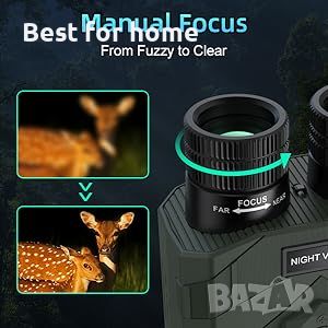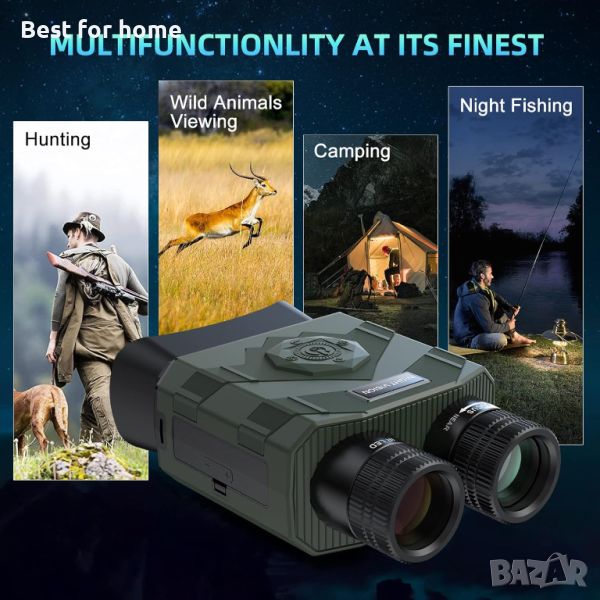 Многофункционални многофункционални очила за нощно виждане: Нашето устройство за нощно виждане е оборудвано с презрамки и въжета, които ви позволяват да ги носите лесно. Бинокълът за нощно виждане е подходящ за нощен лов, къмпинг, нощно плаване, нощен риболов, наблюдение на животни, горска служба, търсене и спасяване, наблюдение на птици, пейзажна фотография и др. Цифровите 1080P HD устройства за нощно виждане ви позволяват да имате подобен на бухал ясна видимост в тъмното