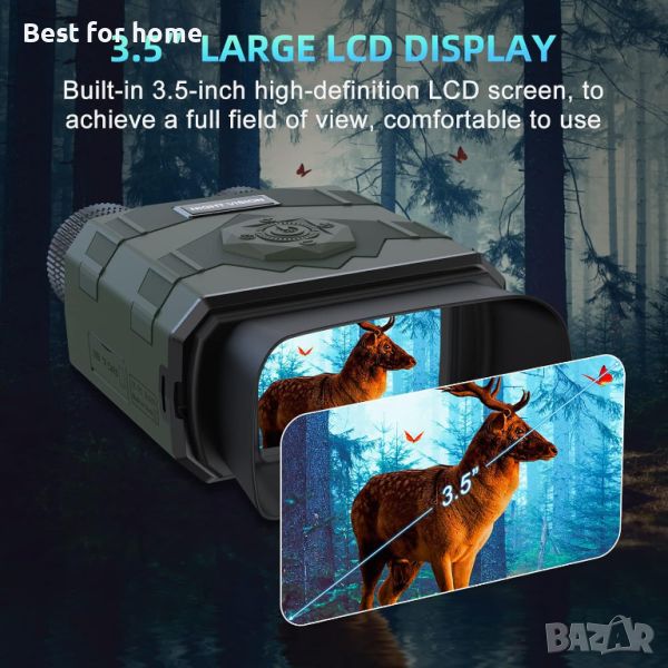 1080P FHD видео с 8X цифрово увеличение: Вътрешният екран на устройството за нощно виждане е 3,5-инчов TFT LCD екран с висока разделителна способност с 1080P (1920 x 1080) HD резолюция и 8x цифрово увеличение. Този дигитален бинокъл за нощно виждане е оборудван с 12 нива на яркост, така че можете да имате ясна видимост през нощта и да се скриете перфектно в тъмното.