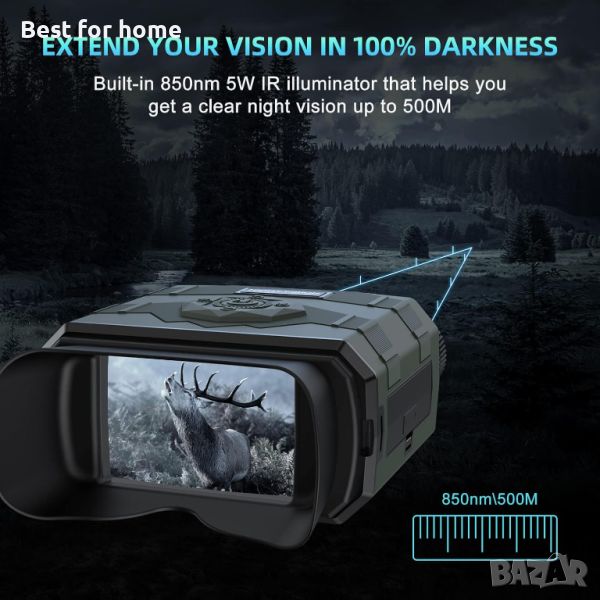 Супер голям обхват за нощно виждане при 100% тъмнина: устройството за нощно виждане има вграден 5 W 850 nm инфрачервен излъчвател. С този бинокъл за нощно виждане можете да наблюдавате дивата природа в пълна тъмнина до 400-500 метра. 9-градусова инфрачервена настройка за адаптиране към различни тъмни среди, за лесно улавяне на прекрасните моменти от нощта.