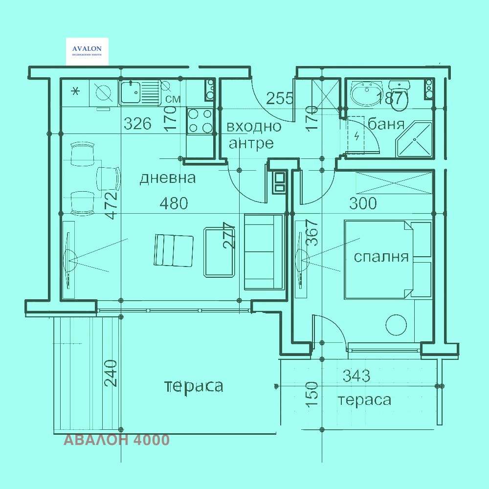Жилището е с разпределение спалня, хол с обособен бокс, баня с тоалетна, антре с място за гардеробна (или пералня и сушилня) и една голяма веранда (бонус), която може да бъде усвоена.