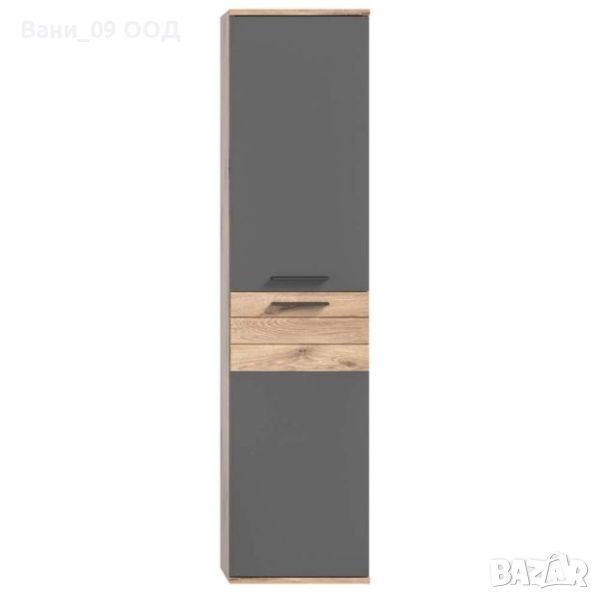 колона за баня с размери Ш:37/Д:24/В:152 см. Моделът се състои от 2 отделения с врати на панти, зад които са монтирани 2 регулируеми рафта образуващи 4 ниши. Шкафът е произведен от ПДЧ с дъбова текстура преливаща от тъмни към по-светли цветове, като светлата текстура е доминираща и без усилие създава усещане на приятна домашна атмосфера. Дъбовата текстура удачно е комбинирана с тъмно сив цвят на вратите на модела. Вътрешно шкафа е с красива дъбова текстура и сив цвят.