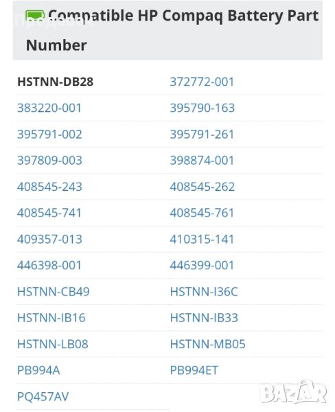 HP Compaq батерия, HSTNN-DB28, снимка 1 - Части за лаптопи - 46815260 HP Compaq батерия, HSTNN-DB28, снимка 2 - Части за лаптопи - 46815260 HP Compaq батерия, HSTNN-DB28, снимка 3 - Части за лаптопи - 46815260 HP Compaq батерия, HSTNN-DB28, снимка 4 - Части за лаптопи - 46815260 1/4