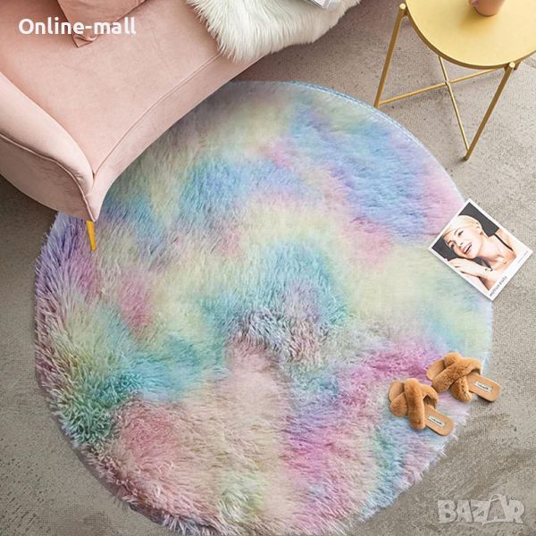 Детски мек кръгъл килим , Дъга , 80см