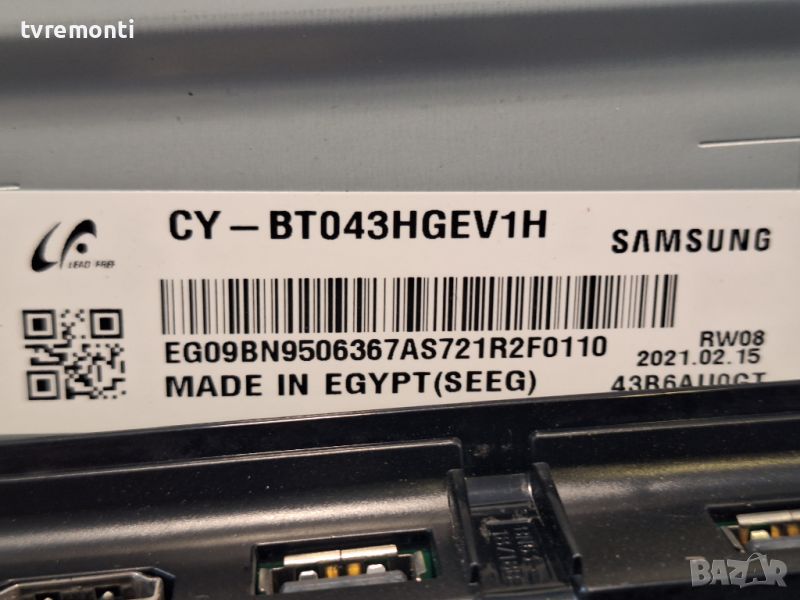 Захранваща платка ,BN44-01053A,L43S6_TDY, SAMSUNG UE43TU8072U for 43inc DISPLAY CY-BT043HGEV1H Борда е гарантирано работещ Демонтиран от телевизор SAMSUNG модел UE43TU8072U със счупен дисплей CY-BT043HGEV1H тествана от нашия техник Ремонт на всички марки съвременни телевизори