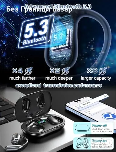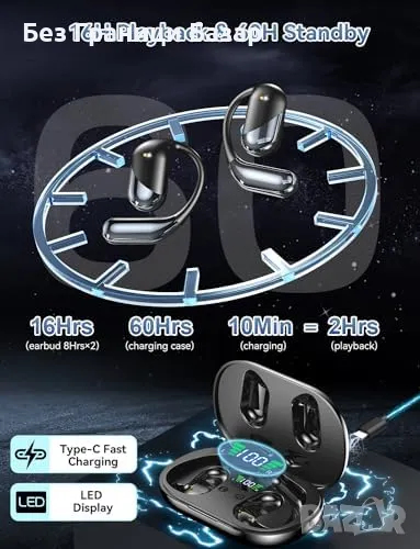 Нови Andygo отворени слушалки за бягане, LED дисплей, 60 ч възпроизвеждане
