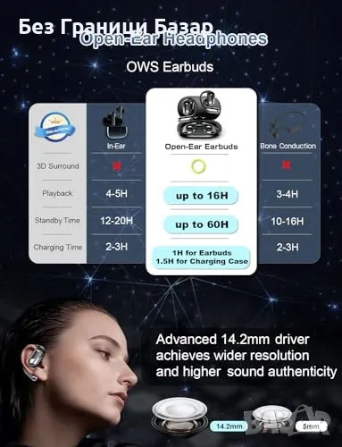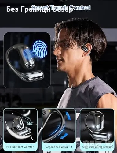 Безопасност и комфорт: Отворен дизайн, който позволява на ушите ви да останат свободни за околния звук.