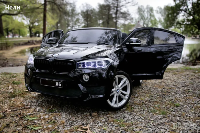 Двуместен джип Лицензиран BMW X6M 12V C MP3 с меки гуми с 2 Кожена седалка за 2 деца → Обява 46818739