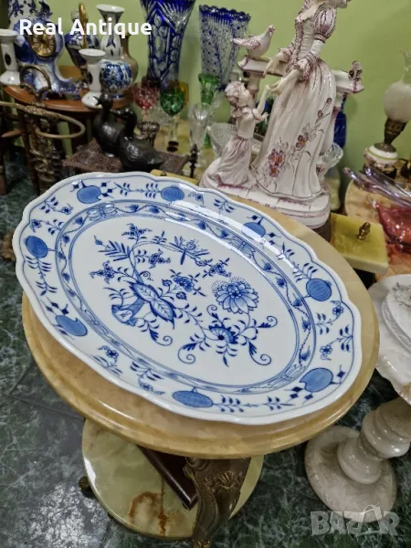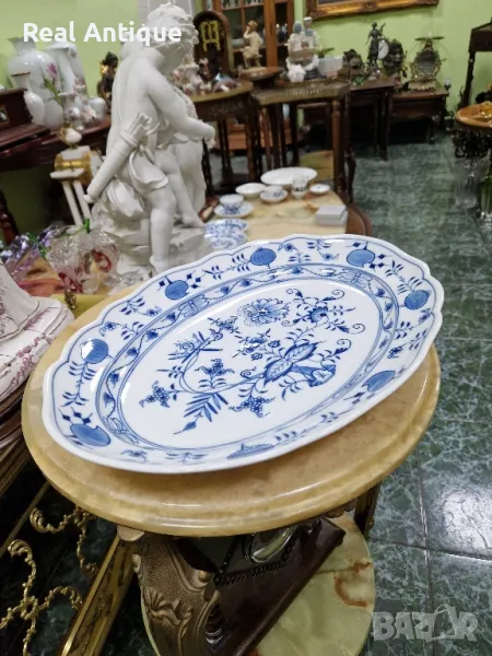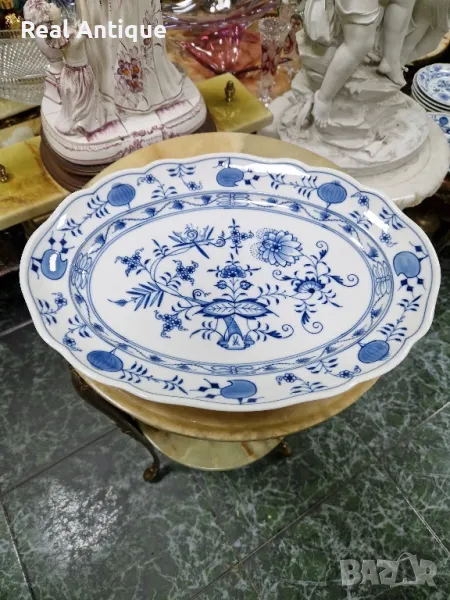 Продавам голямо антикварно колекционерско немско порцеланово плато Meissen серия син лук в безупречно състояние . Марката не се нуждае от представяне. Дължина 36 см ширина 27 см и височина 5 см. Работя с всички куриери. Отговарям бързо.