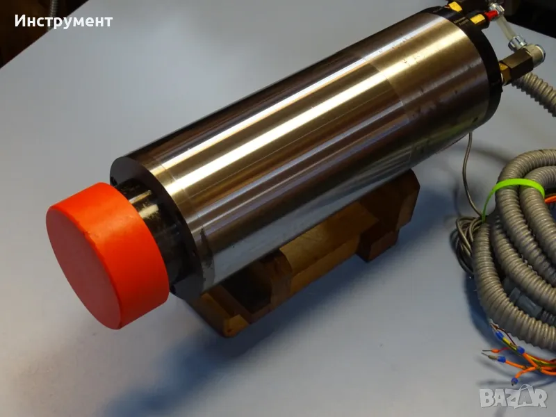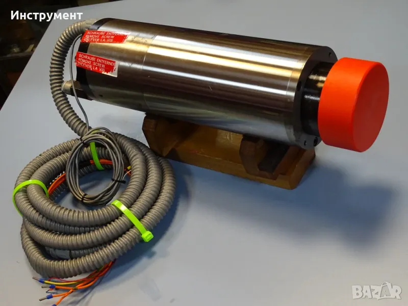 Мотор шпинделът се предлага без цанги, от дългото съхранение по корпуса се забелязват следи на незначителна повърхностна корозия.