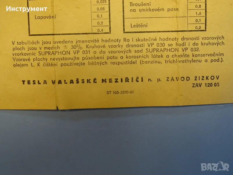 Предлагаме нов комплект чешки еталони за проверка на грапавост производство на Tesla Valasske Mezirici.