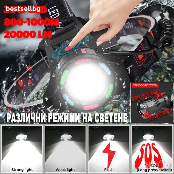 Режими на работа: 100%, 50%, стробоскоп, SOS