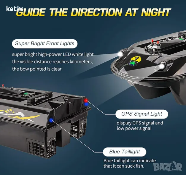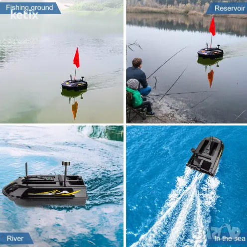 Радиоуправляема Лодка за захранка БУРЯ 8 с товароносимост до 10кг с вграден Автопилот и GPS 8точков и СОНАР. Радио управляема лодка за нанасяне с реален обхват до 650метра.