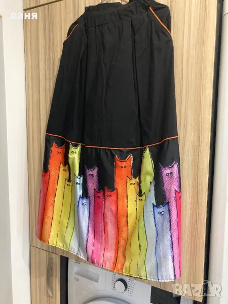 Пола с котки, с ластик . Подарък тениска оранжева изчистена, която се съчетава с полата