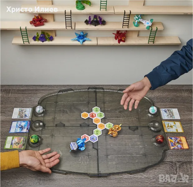 Епичната арена е най-доброто място за битки! С шестоъгълна решетка на дъската, е лесно да поставите Вашите BakuCores (две включени) за вълнуваща битка!