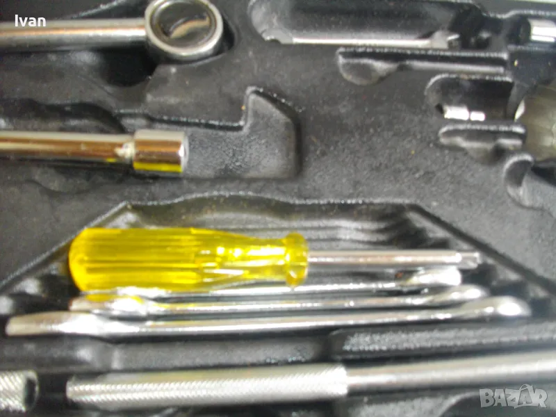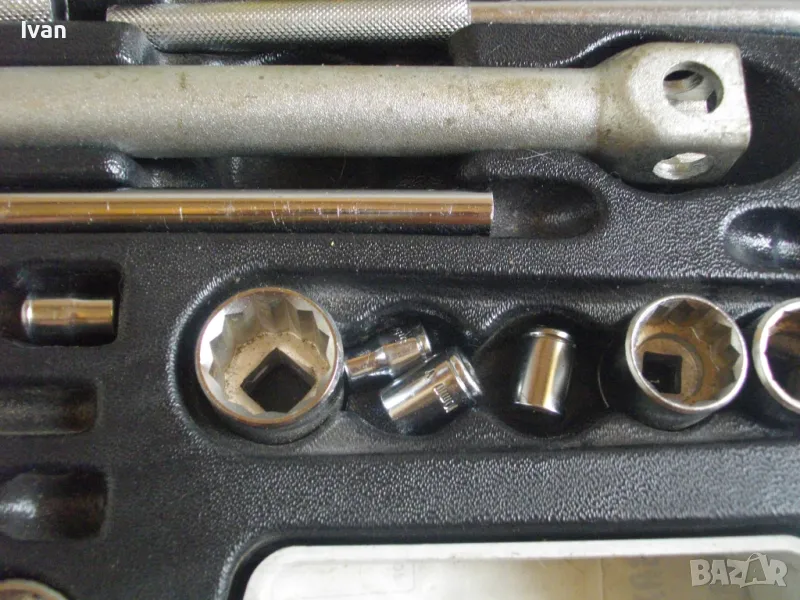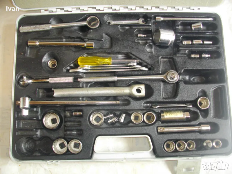 Вътре в гедорията поставена оригинална масивна ПВЦ вложка с вгрдени места за отделните компоненти от комплекта.