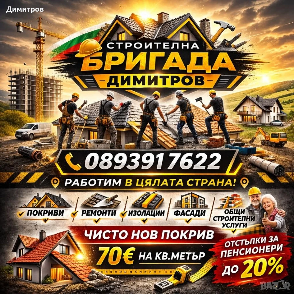 Ремонт на покриви в цялата страна Отстъпки за пенсионери до 20 процента