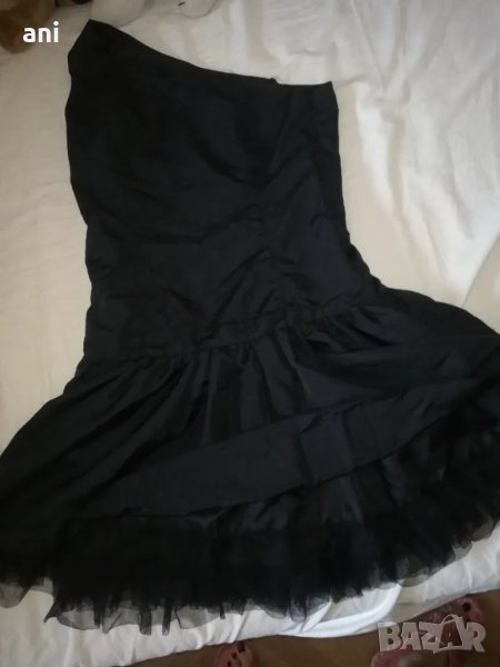 тъмно синя рокля с пайети и джобчета,като нова и Черна официална с един ръкав,отдолу с тюл,идеална.10лв броя