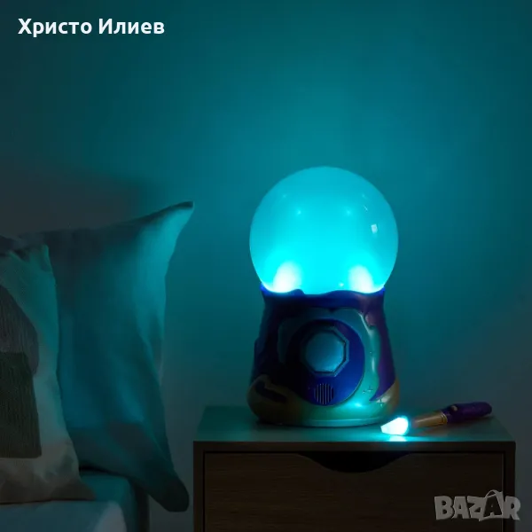 Кристалната топка Magic Mixies може да се използва и като магическа осветена нощна лампа, за да придаде на спалнята на вашето дете мека магическа светлина! Има два начина да използвате кристалната топка като нощна лампа. Можете да използвате неговия режим „Замъгляване“ и да напълните топката с магическа мъгла или да го използвате в неговия режим „Осветяване“ за цветна мека светеща кристална топка без мъгла. Вашето дете може също да движи магическата си пръчка и да накара кристалната топка да светне със същия цвят като върха на пръчката му! Топката ще свети 30 минути, преди да се изключи.