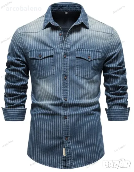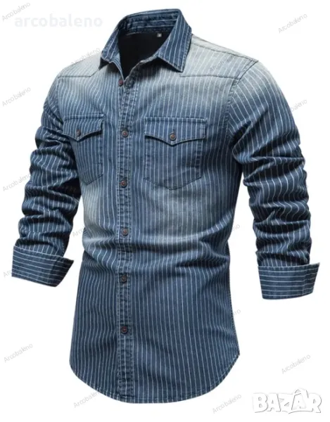 Мъжка плътна изпрана дънкова риза (яке) на райета, 2цвята