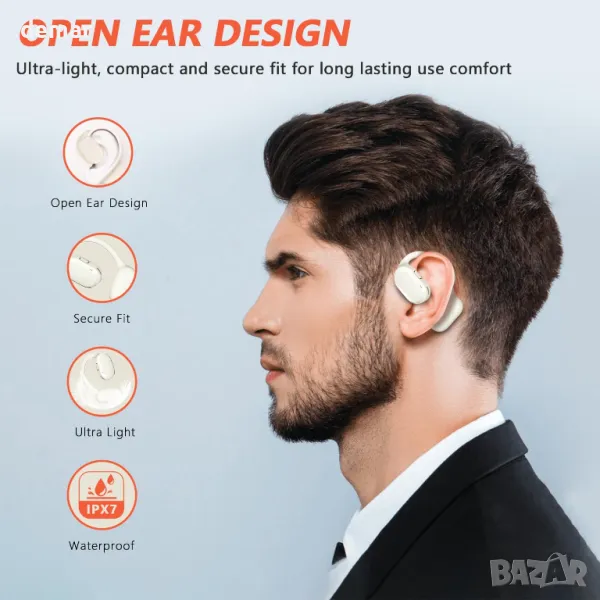 Слушалки с отворено ухо Seflorgo, IP67 с двоен DSP мик.(бежов,черен)