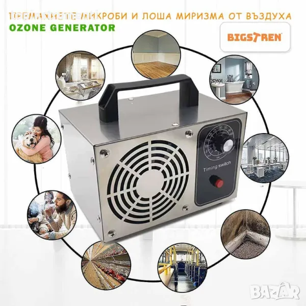 - Едно устройство = много приложения - озонаторът стерилизира помещенията (не само въздуха, но и предметите в него), премахва неприятните миризми като цигарен дим, животински миризми, миризми на плесен или изгоряло, почиства елементи от вентилационни и климатични инсталации (вентилационни канали и труднодостъпни места), също озонира хладилниците.