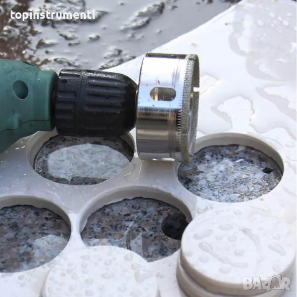 - Прецизни Отвори: благодарение на своята острота и издръжливост, диамантените боркорони са подходящи за пробиване на прецизни и гладки отвори в керамични или каменни плочки за електрически или ВиК инсталации.