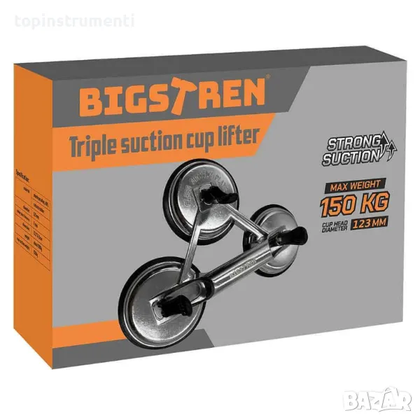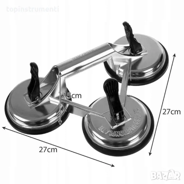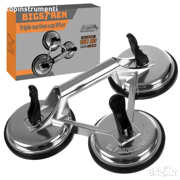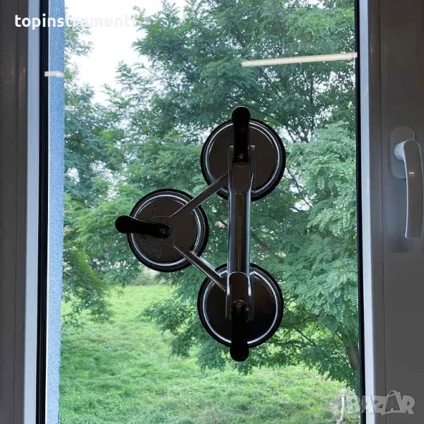 Вендузата е тройна, това означава, че разполага с 3 гумени вендузи, които осигуряват безопасно захващане и лесно пренасяне на плоски елементи.