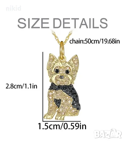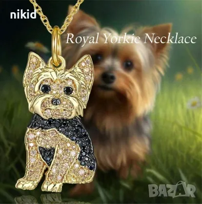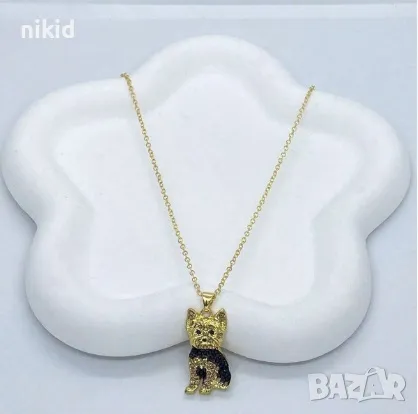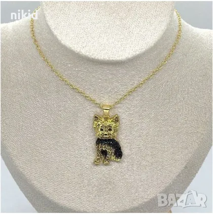 Йоркширски териер Йорки Златисто черно висулка колие синджир → Обява 46827130
