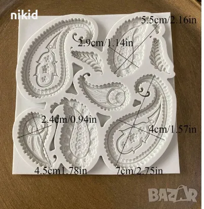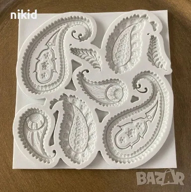 Извити орнаменти тип пафти крила силиконов молд форма фондан шоколад декор украса