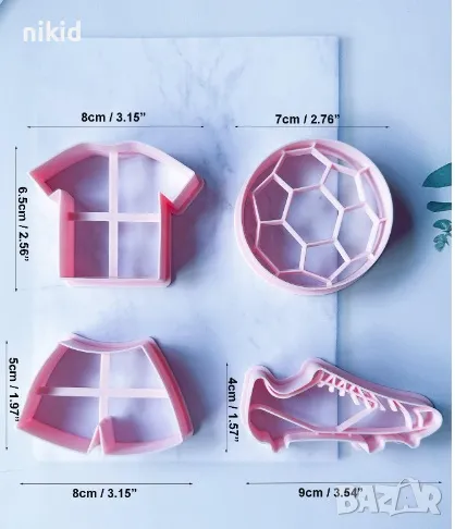 4 бр Футболни футбол топка обувка тениска блуза шорти пластмасови резци форми резец форма за сладки, снимка 1 - Форми - 46827880 4 бр Футболни футбол топка обувка тениска блуза шорти пластмасови резци форми резец форма за сладки, снимка 2 - Форми - 46827880 4 бр Футболни футбол топка обувка тениска блуза шорти пластмасови резци форми резец форма за сладки, снимка 3 - Форми - 46827880 4 бр Футболни футбол топка обувка тениска блуза шорти пластмасови резци форми резец форма за сладки, снимка 4 - Форми - 46827880 1/4