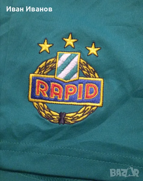 Оригинални къси панталонки на Рапид Виена в перфектно състояние, не са носени, само са съхранявани. Всички етикети, серийни номера и Q-ар кодове са налични. Закупувани са от стадион Алианц във Виена(стадиона на Рапид). Размер С.