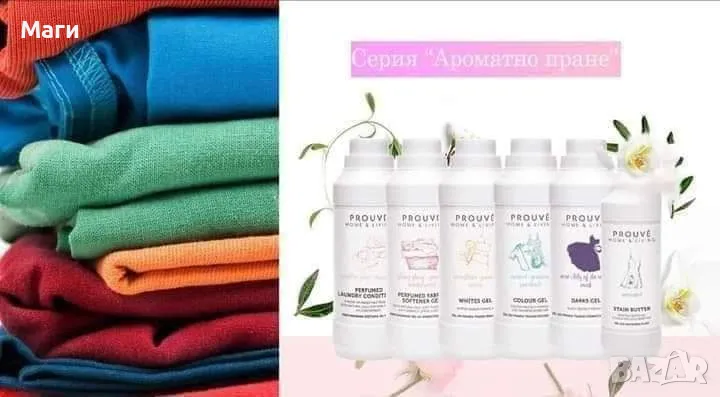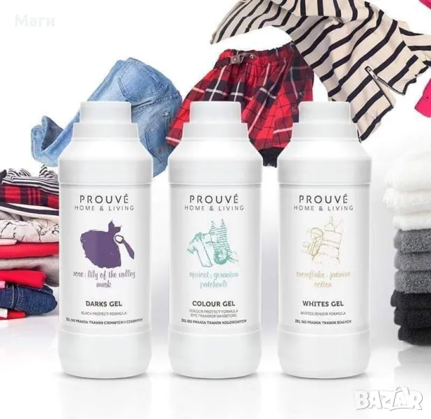 Серията на Prouvé "Ароматно пране" блестящо ще възстанови и оживи естествените цветове на бялото, черното и цветното облекло и ще остави прането свежо и ароматно! Гамата от продукти, защитавайки и грижейки се за влакната, ще направят платовете изключително меки, леки, гъвкави и пухкави, а и ще миришат прекрасно благодарение на аранжировки от най-добрите френски аромати!