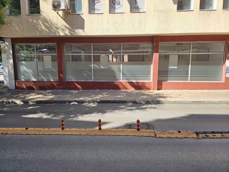 Основното помещение е на партер и е с площ 132 кв.м, и се състои от търговска част и санитарен възел. В помещението има поставен гранитогрес, стени латекс, окачени тавани с монтирано осветление, стъклени витрини алуминиева дограма (височина на витрините около 3.50м.), монтиран климатик с климатична система, СОТ и видео наблюдение. Обектът разполага със санитарен възел в който са поставени теракот и смесители. Височината на помещението е над 3.50м. Над основното помещение са разположени два офиса всеки с площ от 20 кв.м. и изградено самостоятелно сърварно помещение,което обслужва всички търговски помещения, поставени са три климатика и паркет. На сутерена е разположено помещение с площ 45 кв.м., което е използавано за трезор на банка.