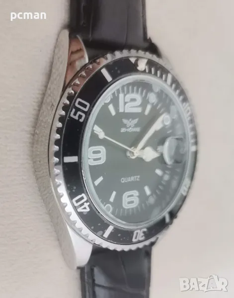 Zhowe Silver Black Lethar ME920135 Луксозен мъжки кварцов часовник с кожена → Обява 46829644