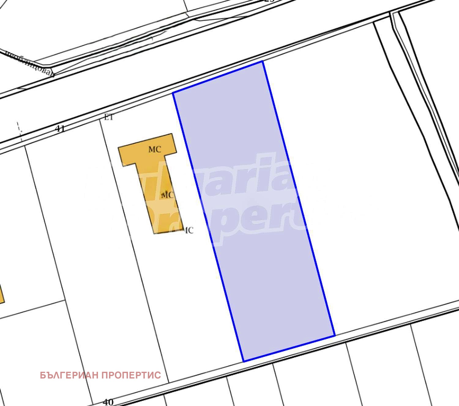 лозе. Имотът е с площ 11 834 кв. м. без ток и вода. Парцелът е равен и с правилни форми, с лице на път 63 метра, без денивелация.