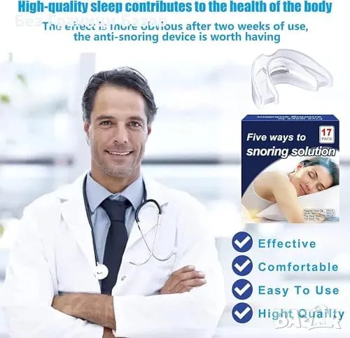 Комплект от 17 анти-хъркащи устройства: Помага за намаляване на хъркането при мъже и жени.