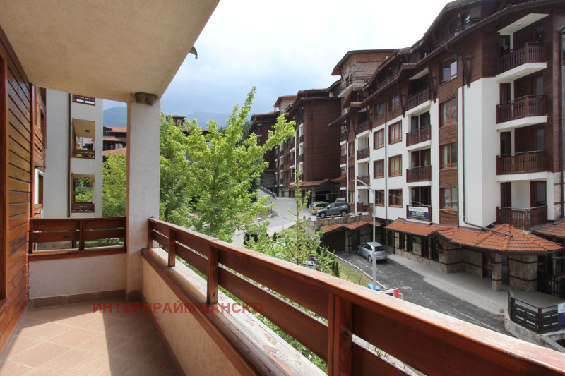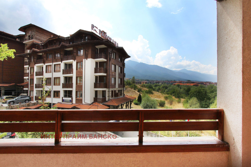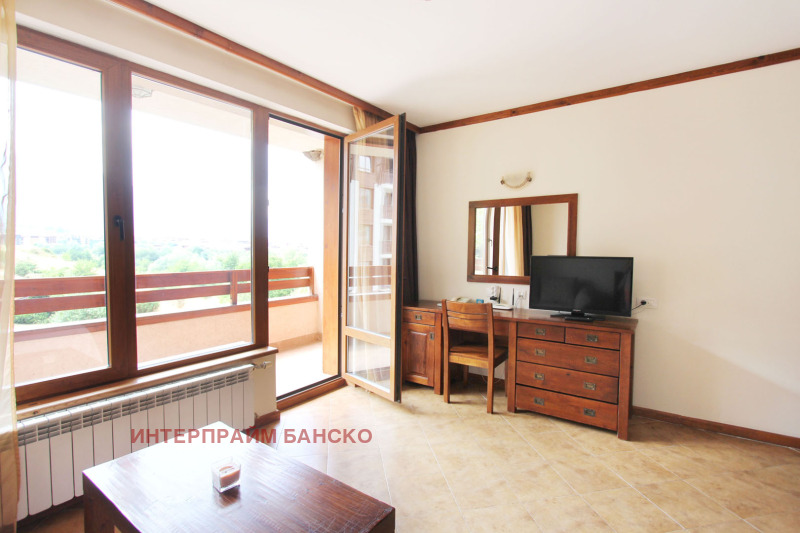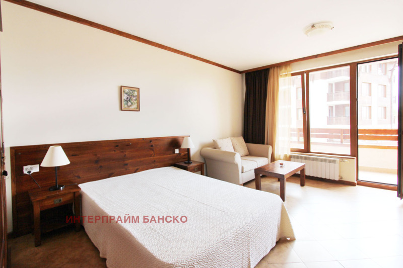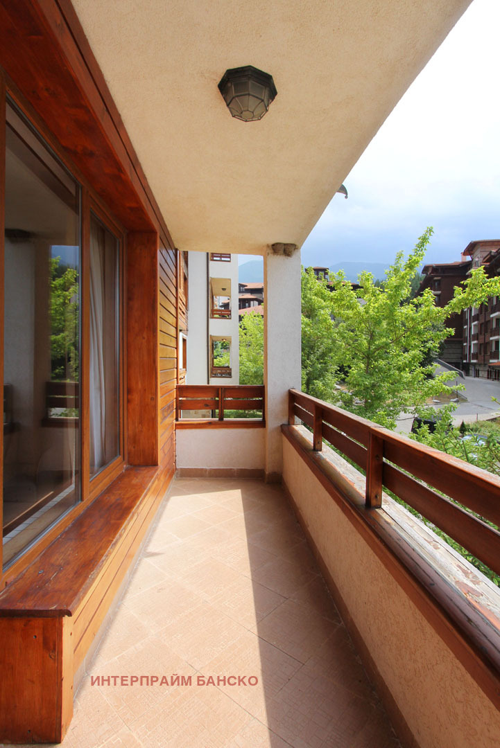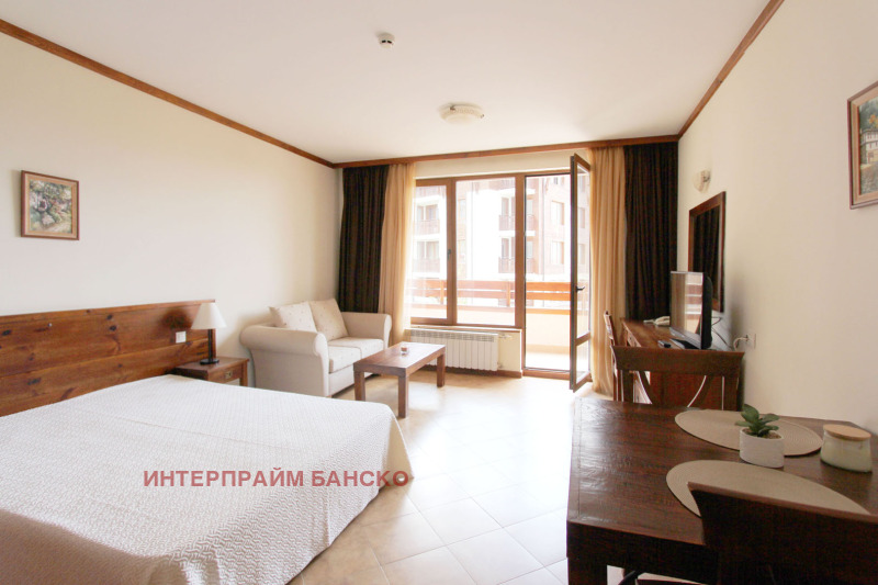 Агенция Интерпрайм отдава под наем напълно обзаведено студио под наем в луксозния четири звезден комплекс СПА Ризорт Св. Иван Рилски непосредствено до Парк Пирин с прекрасна гледка към Пирин планина. Апартаментът е разположен на 3 ти етаж. Състои се от антре, баня с тоалетна и вана, голяма спалня с нощни шкафчета и гардероб , трапезна маса със столове, напълно оборудвана кухня, прекрасен балкон с гледка към Банско и Пирин, разтегателен диван, TV с кабелна телевизия и офис кът.