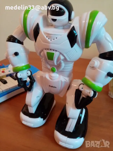 2.Робот Calvin ходещ, пеещ, стрелящ,светещ, издава различно звуци и говорящ.