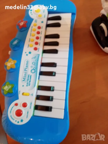 1.Мини пиано с акомпанимент, ритъм бокс и животински звуци, свтещо с цветни светлини, ново, заредено с батерии. Цена 10 euro.