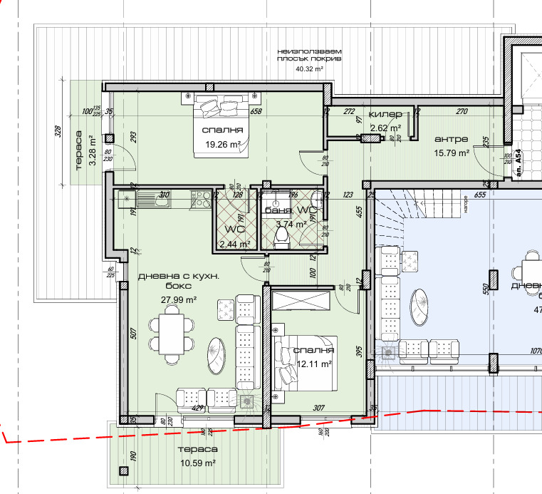 Всекидневна с кухненска част