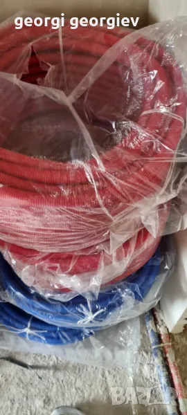 Гофре 1бр е 50 м. Имам 8 броя 4 със синьогуфре и 4 със черврно гуфре ако се вземат всичките 8 цеата щее 110за бр