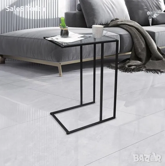 Маса с метална конструкция и стъклена плот, 40x30x59см, снимка 1 - Маси - 46833857 Маса с метална конструкция и стъклена плот, 40x30x59см, снимка 2 - Маси - 46833857 1/2