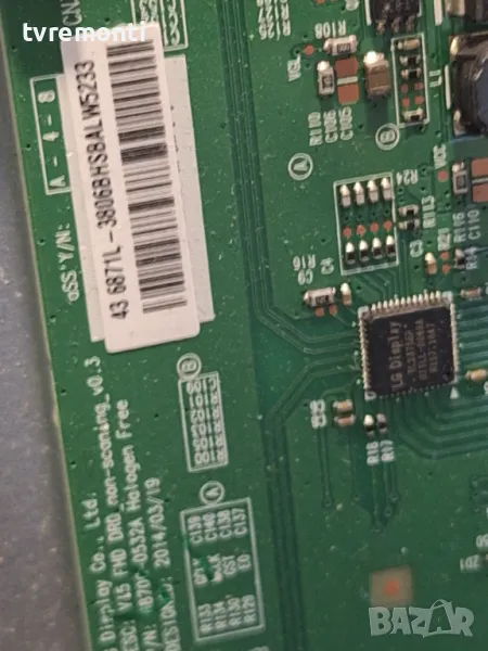 Платка T-Con board 6870C-0532A 6871L-3806B for 43inc DISPLAY VES430UNDL-2D-N12 for, Toshiba 43L3663DA Борда е гарантирано работещ Демонтиран от телевизор Toshiba модел 43L3663DA със счупен дисплей VES430UNDL-2D-N12 тествана от нашия техник Ремонт на всички марки съвременни телевизори