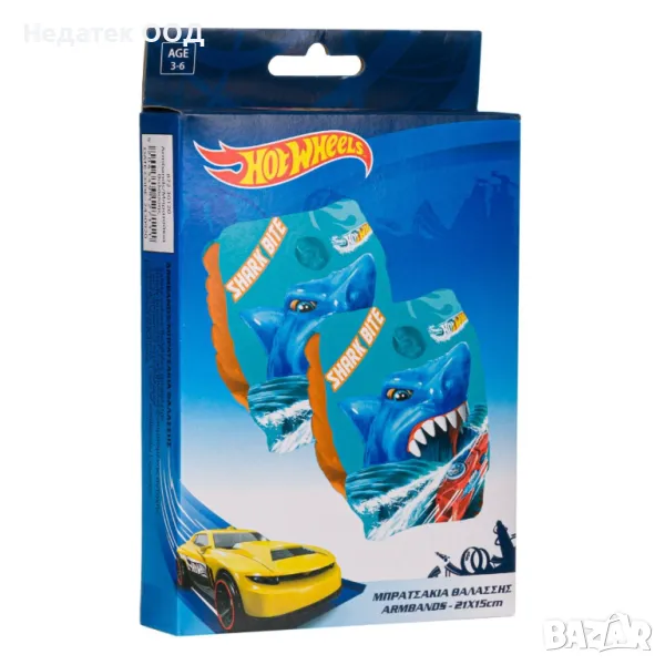 Надуваеми рамена за плуване Hot Wheels дизайн на акула с 2 безопасни въздушни камери и предпазни клапани.