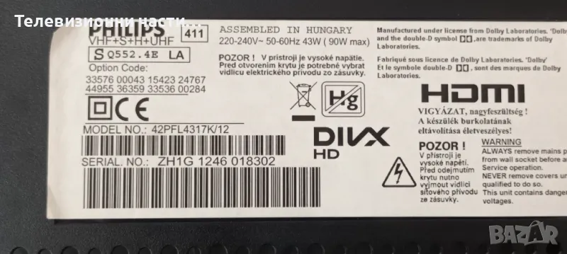 Philips 42PFL4317K/12 със счупен екран LC420EUE(SE)(F2)/3139 123 65324-MB 65334-SB Wk1216.3/3PAGC000