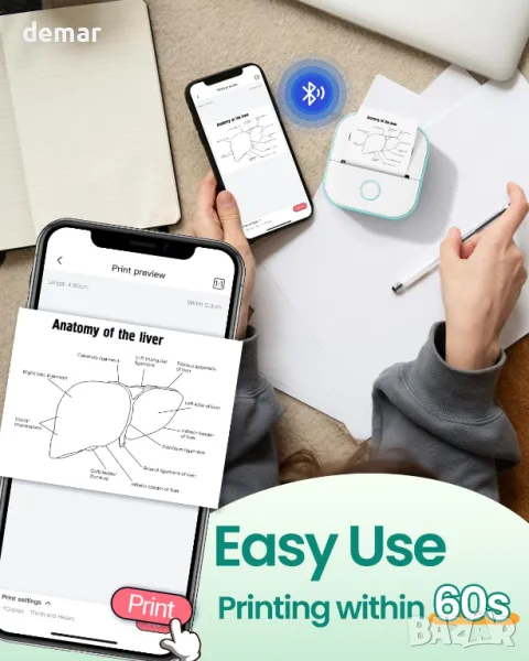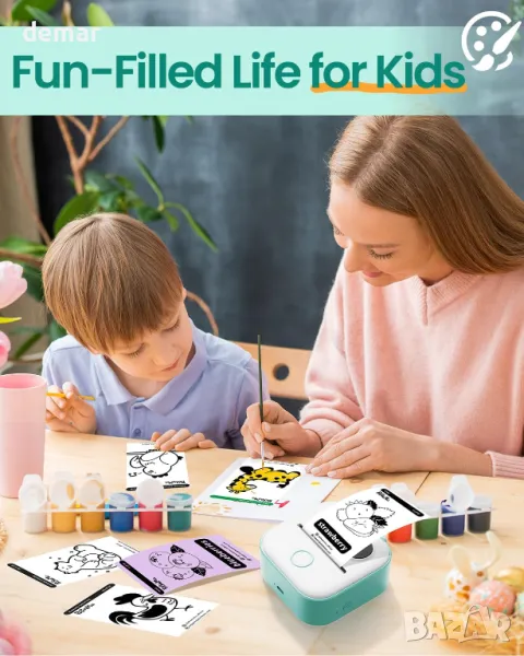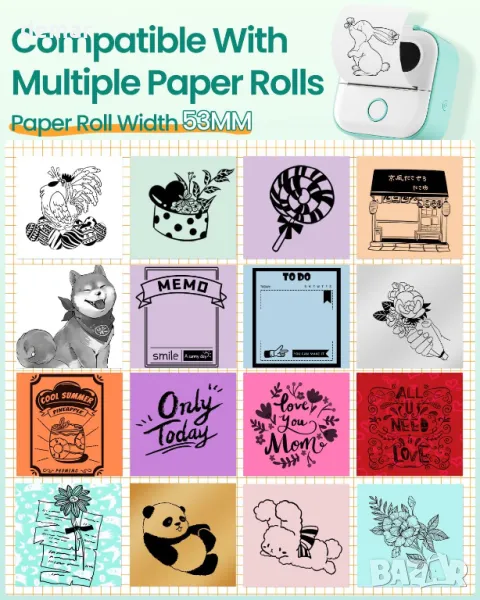 Мини джобният принтер ASprink е компактен и стилен термичен принтер, идеален за 53MM хартиени ролки, идеален за подаръци за рождени дни, Коледа, Хелоуин и др. Този универсален принтер е перфектен за създаване на бележки за ревизии, дневници със задачи, списъци със задачи, списъци за пазаруване и образователни етикети, предлагайки забавление и удобство при отпечатване. Неговият лек, преносим дизайн (8,7 * 9 * 4 сантиметра) позволява лесно носене в раница или джоб, което го прави чудесен спътник при пътуване. Съвместим с приложението Phomemo, той поддържа Bluetooth печат с едно щракване, с различни шрифтове, филтри, шаблони и графики. Работи с Android 7.0 и iOS 13.0+ чрез Bluetooth 4.0, осигурявайки печат без мастило и безпроблемно. Принтерът работи с над 50 вида термохартии, включително цветни, прозрачни и полупрозрачни стикери, което го прави универсален инструмент за творчески проекти.