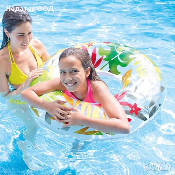 Пояс за плуване с диаметър 97 см, със здрави дръжки в 3 цветни флорални дизайна.