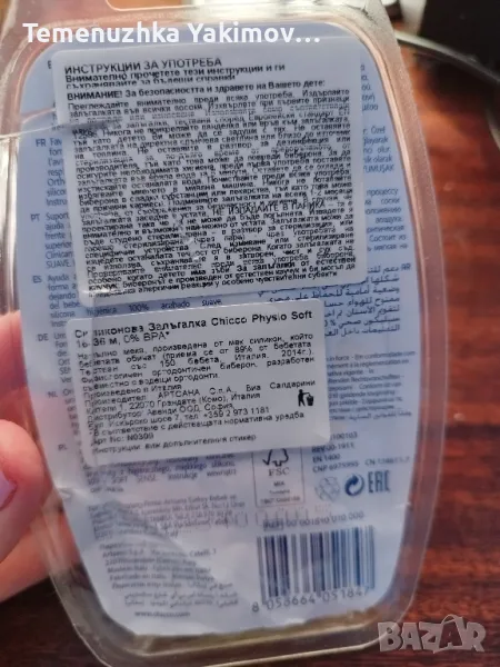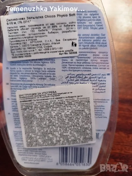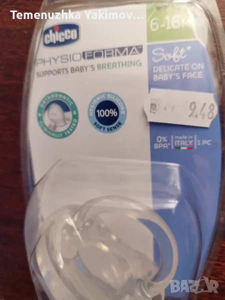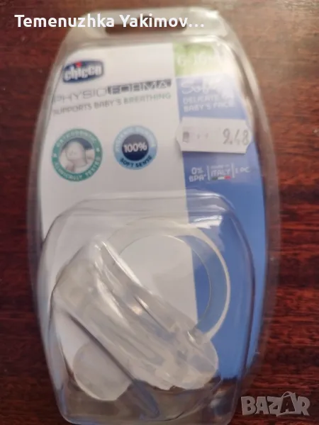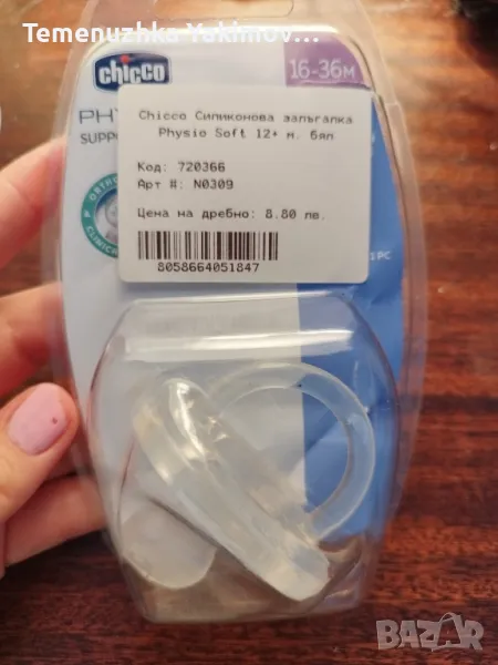 3.Силиконова прозрачна залъгалка на Chicco -16-36m. -5лв.