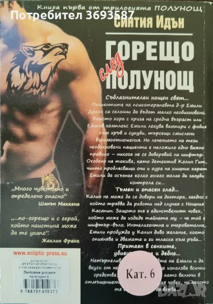 Книга на автора Синтия Идън - Горещо след полунощ. За София може и лично предаване.