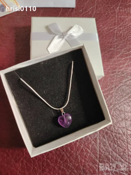 Ново нежно сребърно колие с висулка с аметист под формата на сърце , снимка 1 - Колиета, медальони, синджири - 46837561 Ново нежно сребърно колие с висулка с аметист под формата на сърце , снимка 2 - Колиета, медальони, синджири - 46837561 Ново нежно сребърно колие с висулка с аметист под формата на сърце , снимка 3 - Колиета, медальони, синджири - 46837561 1/3
